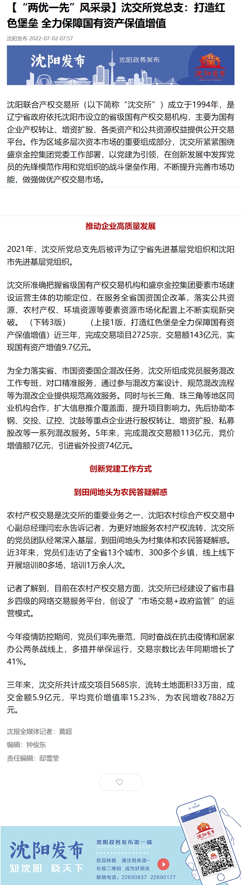 【“兩優(yōu)一先”風(fēng)采錄】沈交所黨總支:打造紅色堡壘 全力保障國有資產(chǎn)保值增值