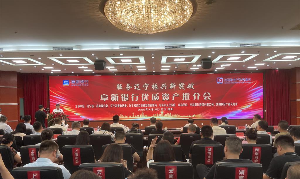2023年7月18日,由遼寧省工商業(yè)聯(lián)合會、省委政法委、省金融監(jiān)管局、阜新市政府主辦,沈陽聯(lián)合產(chǎn)權交易所集團與阜新銀行承辦的阜新銀行優(yōu)質(zhì)資產(chǎn)推介會在沈交所集團成功舉行。遼寧省政協(xié)副主席、省工商聯(lián)主席、總商會會長趙延慶、省金融監(jiān)管局副局長吳濤、阜新市政府副市長胡國勇、省政法委處長蘇玉朋、阜新銀行黨委書記盧德開及省工商聯(lián)、阜新市相關部門領導出席會議。來自省工商聯(lián)20家商會、會員企業(yè)家代表、多家不良資產(chǎn)投資機構、律所、不動產(chǎn)中介機構等二級市場機構,120余投資者現(xiàn)場參會。