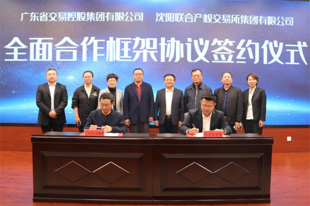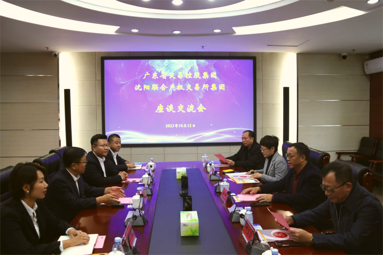 10月12日,廣東省交易控股集團(tuán)黨委書記、董事長劉聞一行到訪沈陽聯(lián)合產(chǎn)權(quán)交易所集團(tuán),沈交所集團(tuán)總經(jīng)理王曙光與來訪客人進(jìn)行深入座談交流。雙方簽訂了《全面合作框架協(xié)議》。廣東交易控股集團(tuán)外部董事邢益強(qiáng)、鄧沫,集團(tuán)副總經(jīng)理朱永勝,集團(tuán)首席信息官、廣東粵數(shù)網(wǎng)絡(luò)建設(shè)有限公司董事長謝江濤,集團(tuán)總經(jīng)理助理、廣東聯(lián)合產(chǎn)權(quán)交易中心董事長張麗,集團(tuán)交易運(yùn)營部總監(jiān)柯璟;沈陽聯(lián)合產(chǎn)權(quán)交易所集團(tuán)副總經(jīng)理任孟宇、集團(tuán)風(fēng)控合規(guī)、信息技術(shù)部部長郭濤,集團(tuán)市場合作開發(fā)部、采購平臺運(yùn)營部部長張凌參加座談交流。