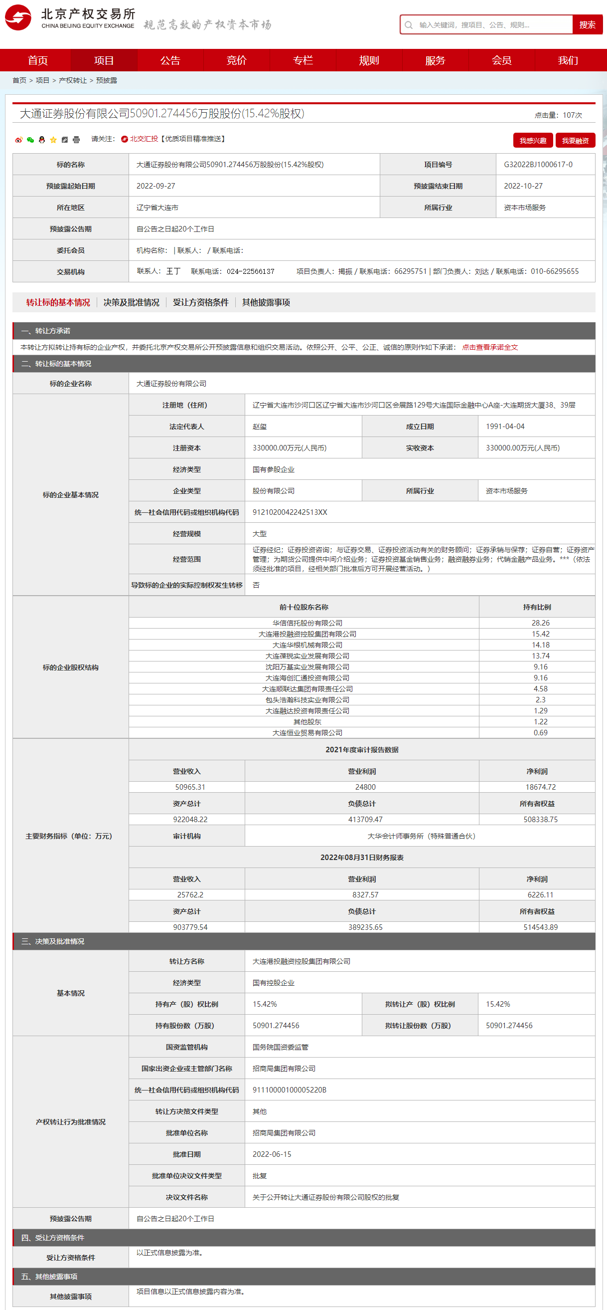大通證券股份有限公司50901.274456萬股股份(15.42%股權(quán))