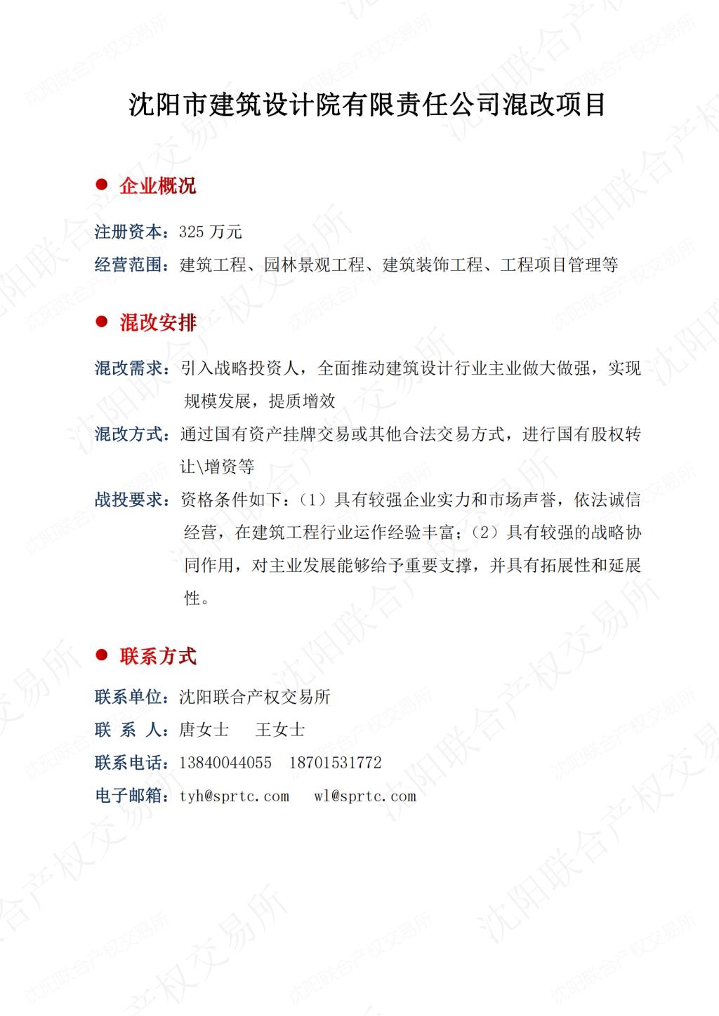 2.沈陽市建筑設(shè)計院有限責(zé)任公司混改項目