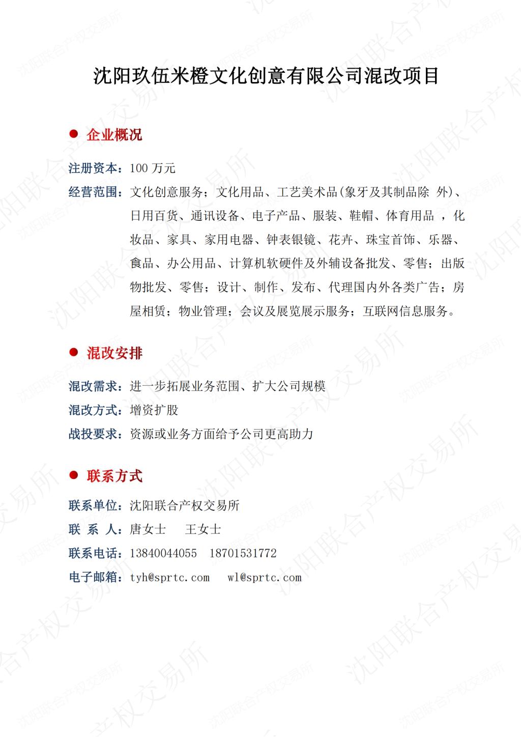 11.沈陽(yáng)玖伍米橙文化創(chuàng)意有限公司混改項(xiàng)目