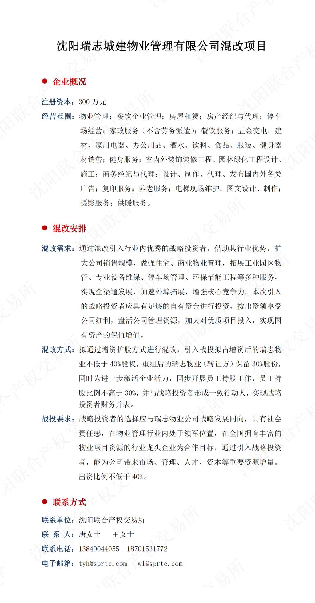 15.沈陽瑞志城建物業(yè)管理有限公司混改項目