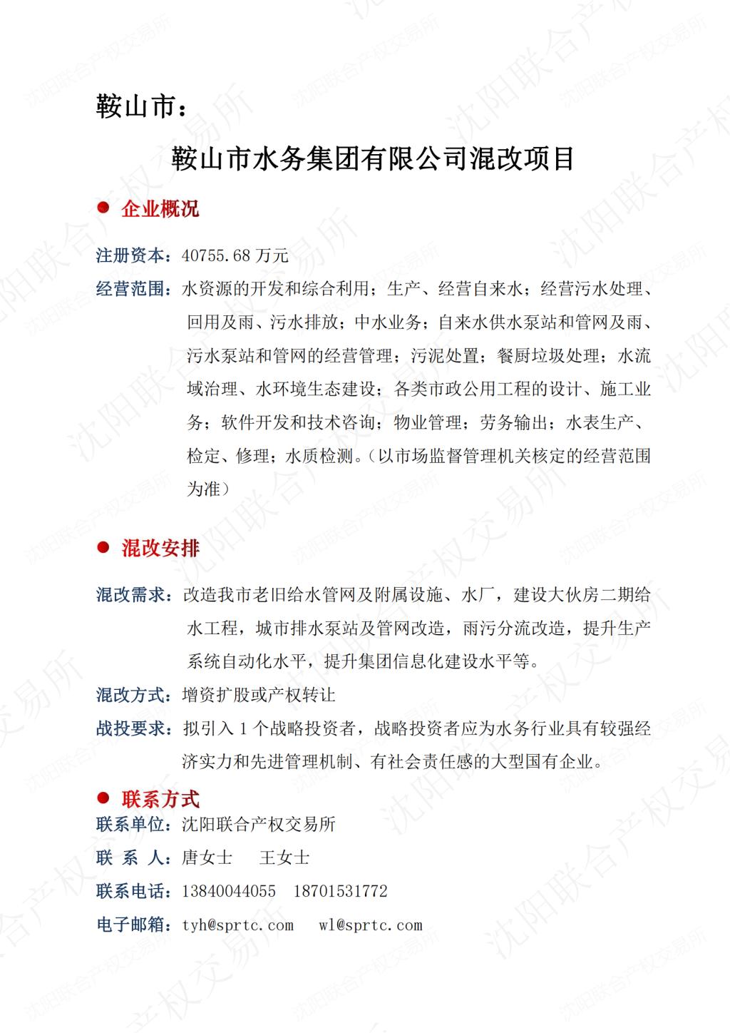 33.鞍山市水務(wù)集團(tuán)有限公司混改項(xiàng)目