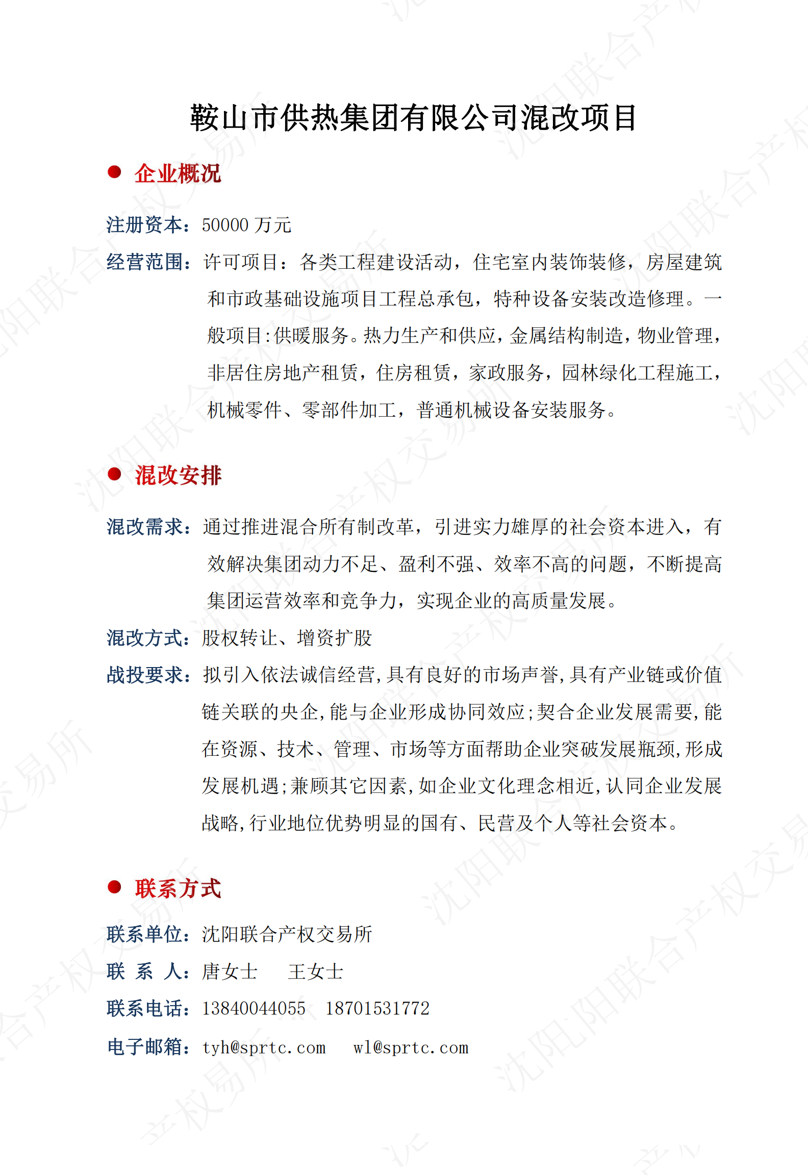 36.鞍山市供熱集團(tuán)有限公司混改項(xiàng)目