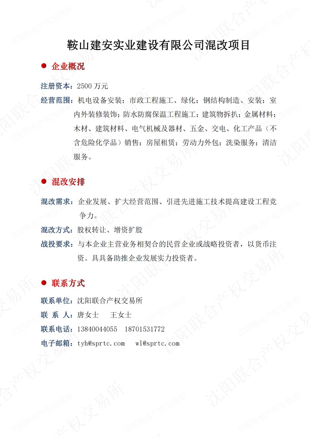 40.鞍山建安實業(yè)建設有限公司混改項目