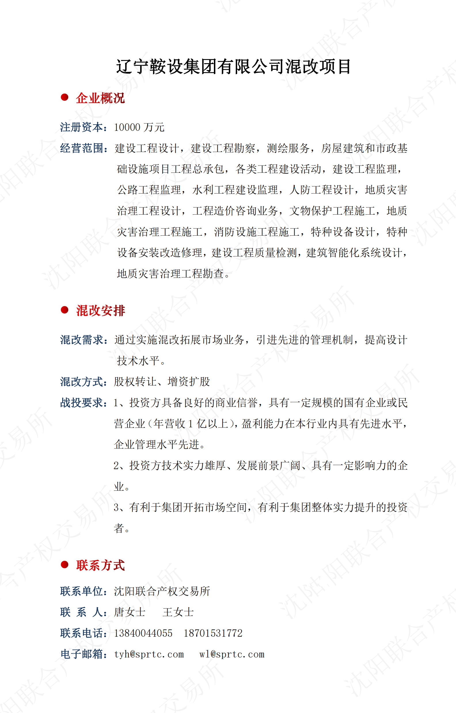 41.遼寧鞍設(shè)集團(tuán)有限公司混改項(xiàng)目