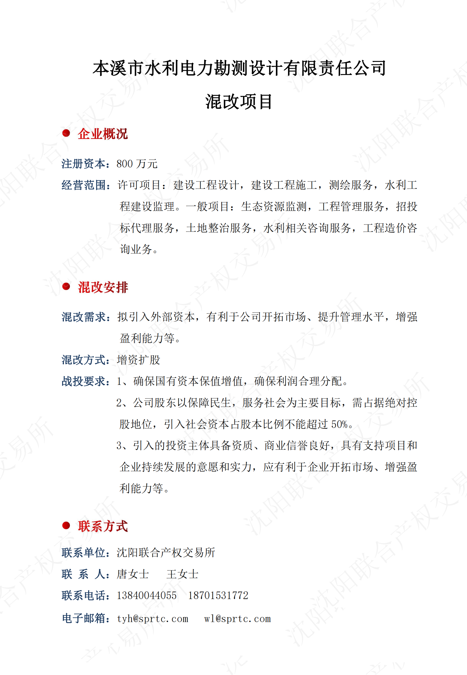 57.本溪市水利電力勘測設(shè)計(jì)有限責(zé)任公司混改項(xiàng)目