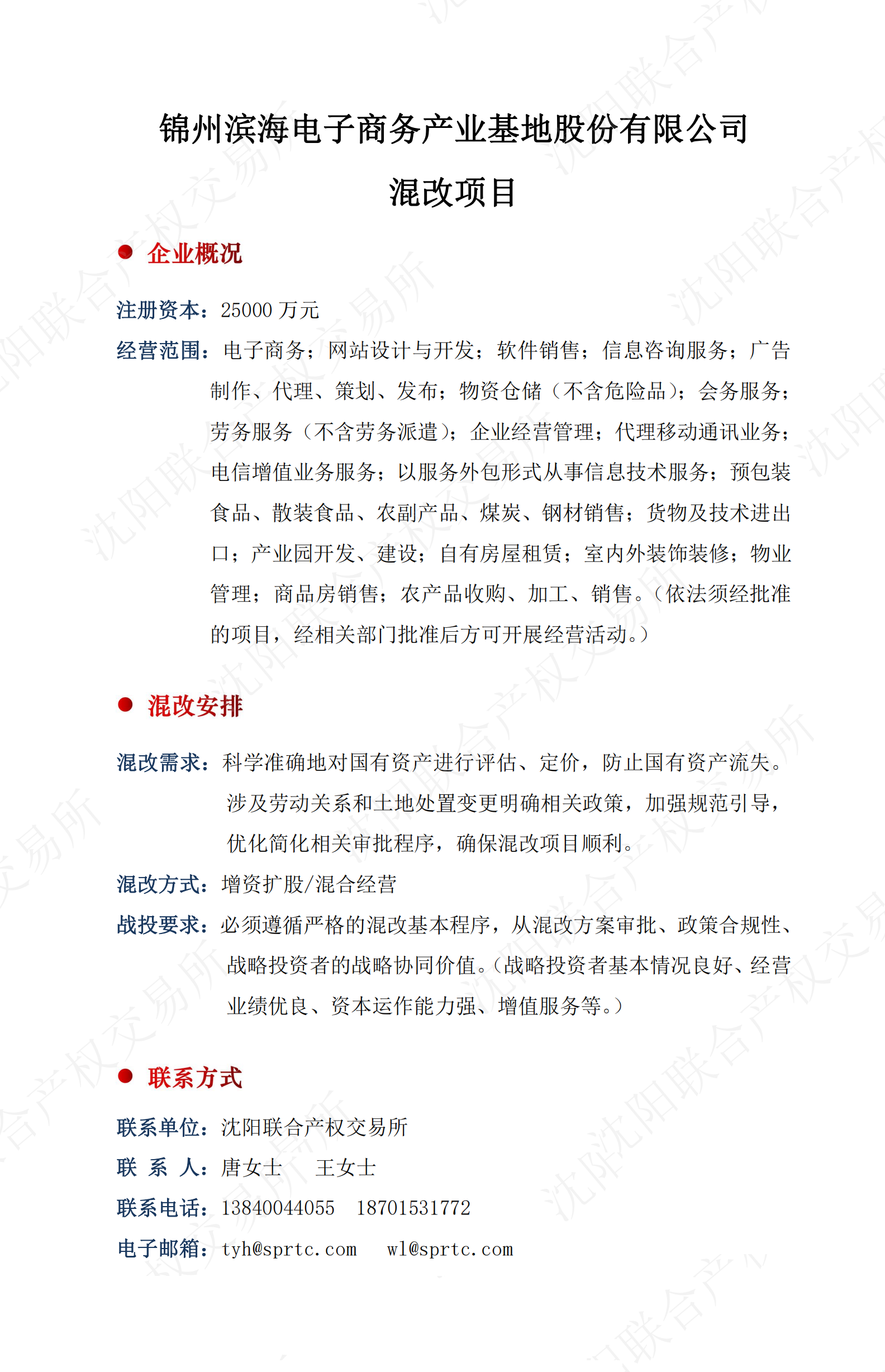68.錦州濱海電子商務(wù)產(chǎn)業(yè)基地股份有限公司混改項(xiàng)目