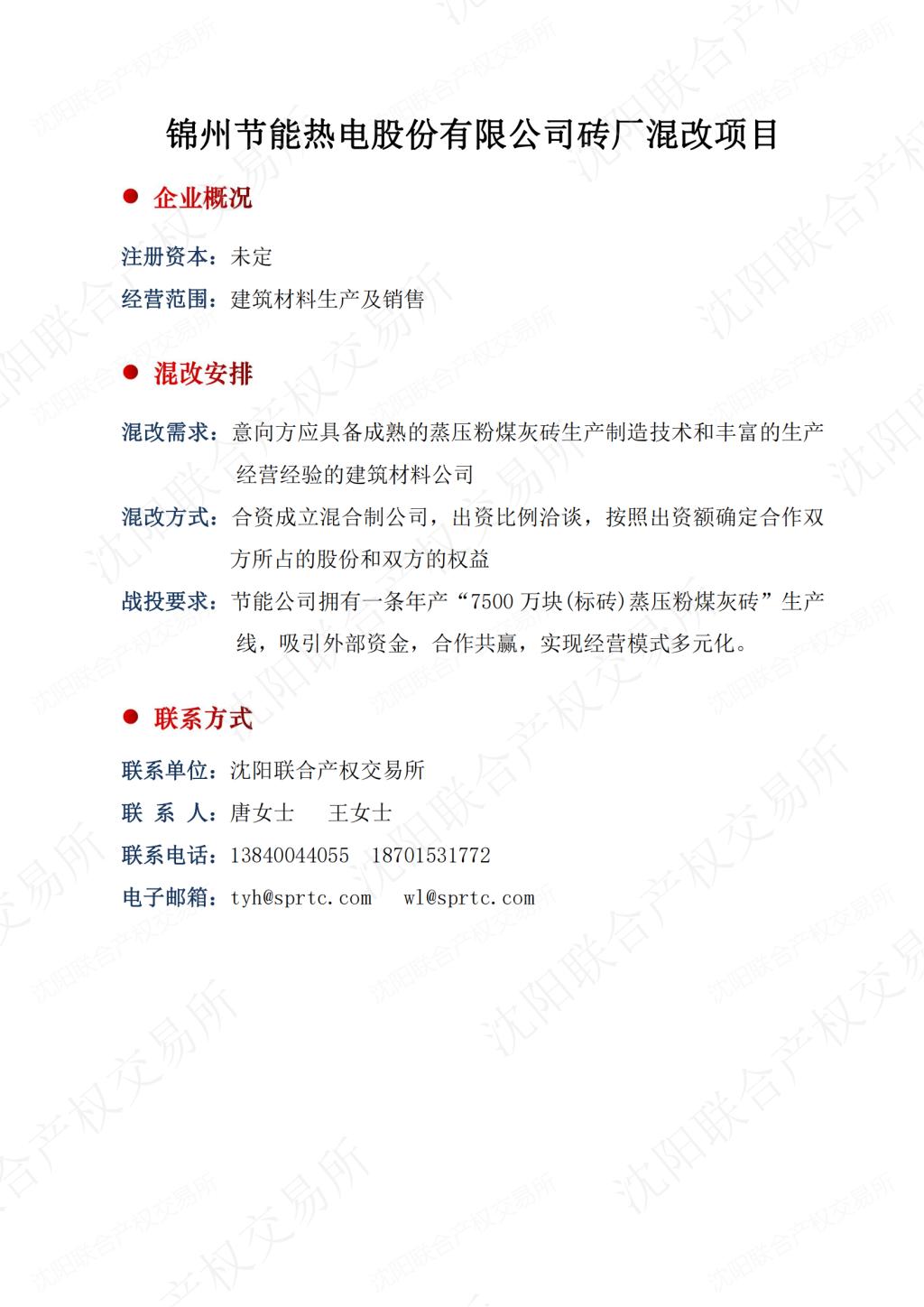 72.錦州節(jié)能熱電股份有限公司磚廠混改項目