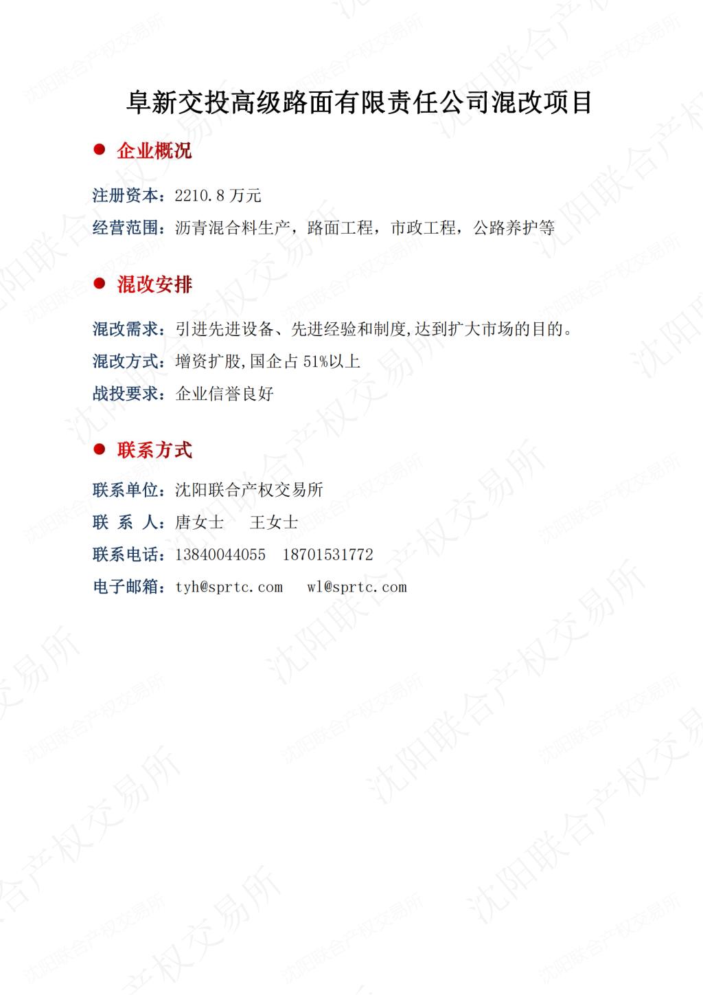 76.阜新交投高級路面有限責(zé)任公司混改項(xiàng)目