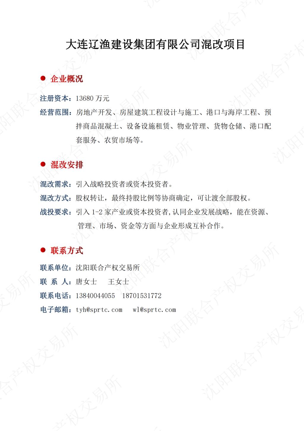 010.大連遼漁建設(shè)集團有限公司混改項目