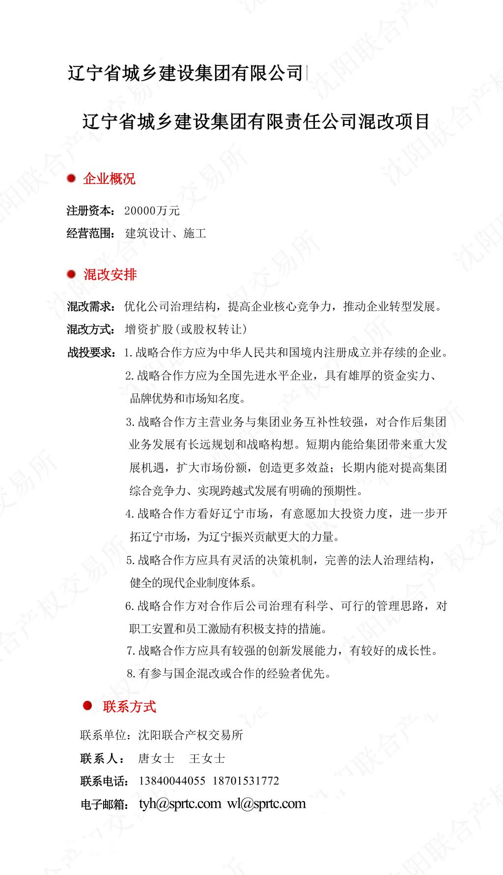 012.遼寧省城鄉(xiāng)建設(shè)集團有限責任公司混改項目
