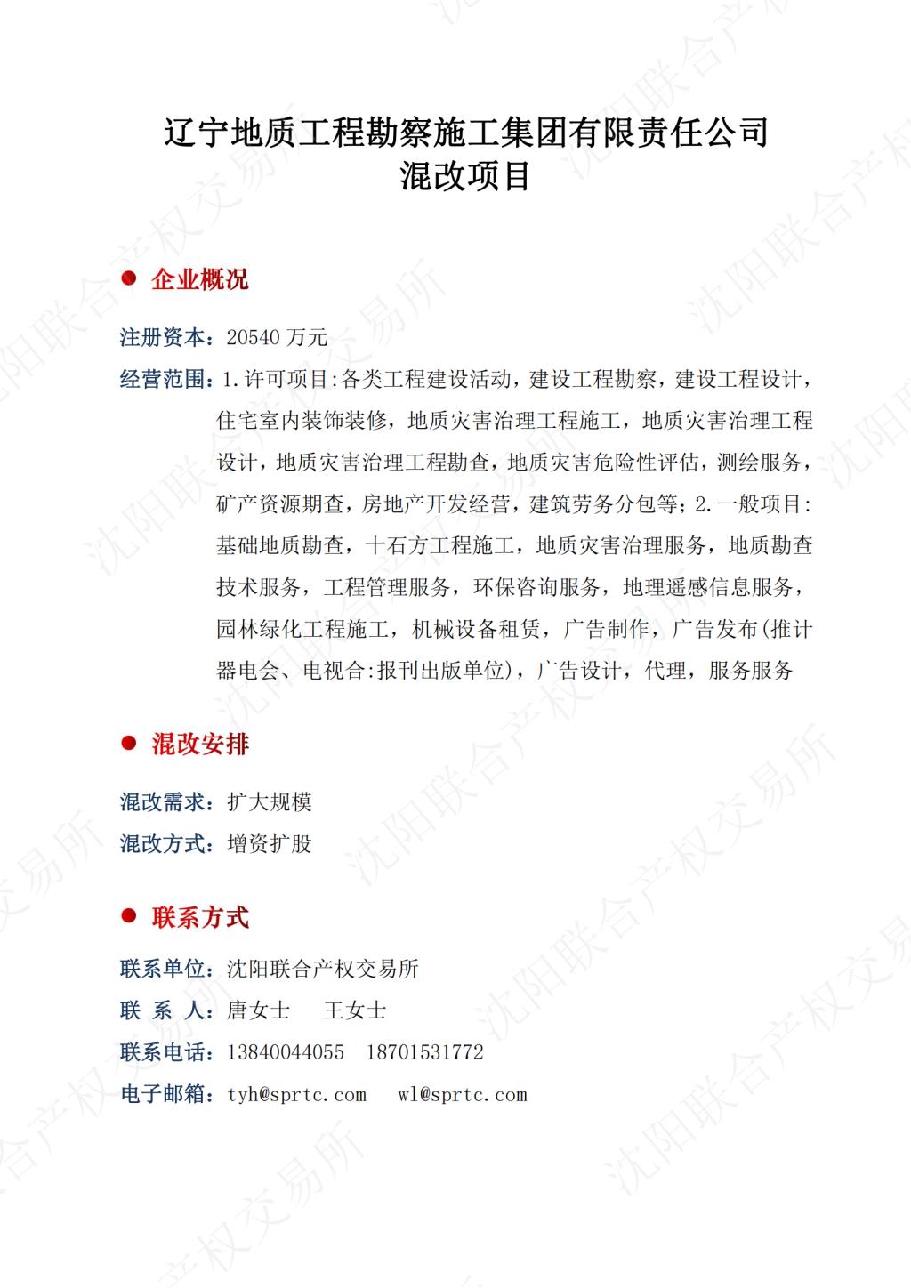 018.遼寧地質(zhì)工程勘察施工集團(tuán)有限責(zé)任公司混改項(xiàng)目
