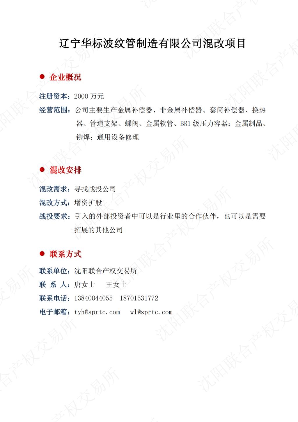 019.遼寧華標(biāo)波紋管制造有限公司混改項(xiàng)目