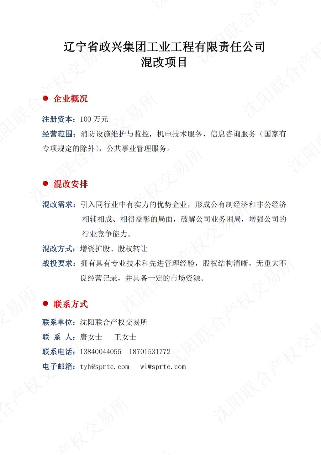 022.遼寧省政興集團(tuán)工業(yè)工程有限責(zé)任公司混改項(xiàng)目