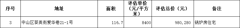 位于大連市中山區(qū)葵英街愛(ài)華巷21-1號(hào)兩處房產(chǎn),于上個(gè)世紀(jì)70年代建成。一處房屋為簡(jiǎn)易房,磚木結(jié)構(gòu)共1間房,總建筑面積116.7㎡,用途為住宅,權(quán)證號(hào):(中股份)2011200922號(hào);另一處房屋原為望海巷14-16號(hào)住宅樓配套用的鍋爐房,因住宅樓采用集中供暖方式鍋爐房的供暖功能已廢棄,房屋建筑面積約97㎡,無(wú)房證。