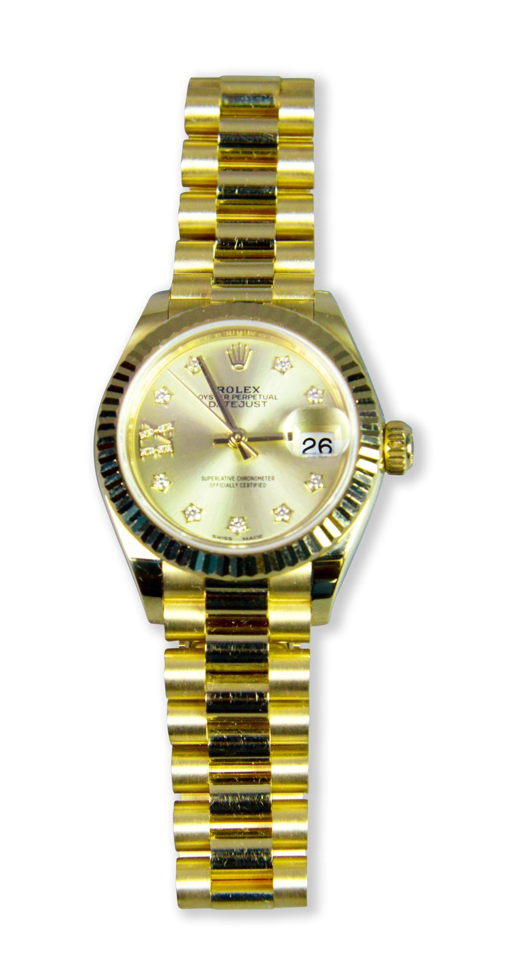 女裝日志型,18K黃金表殼,香檳色圓形表盤, |