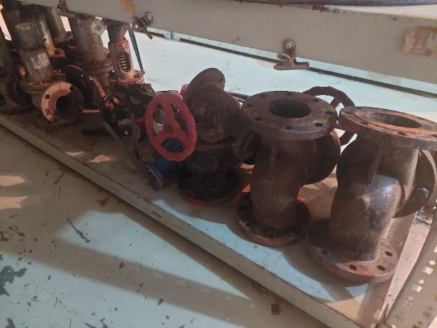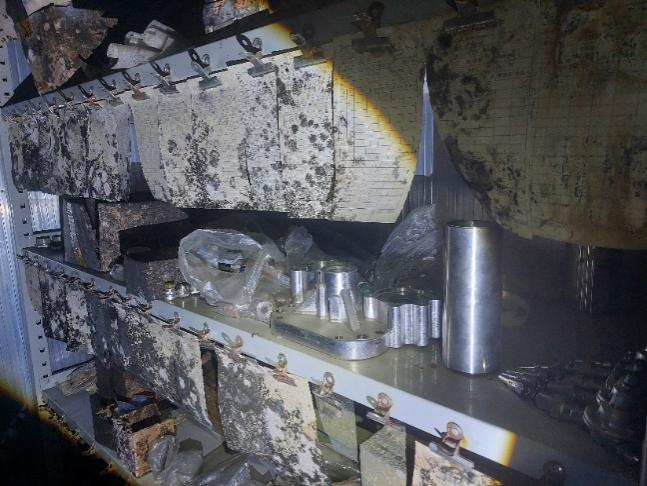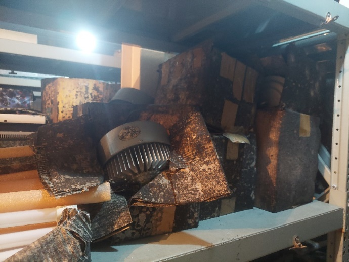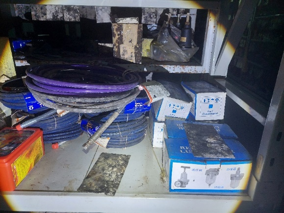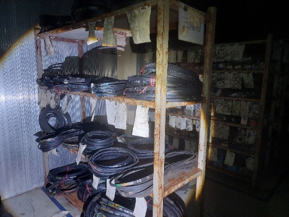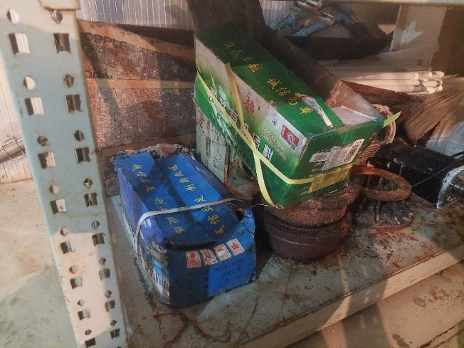 涂裝用材料主要包括隨車用的膠皮堵件、閣瑞斯頂蓋裝飾條、華頌窗框黑膜、各型號過濾材料、老舊工具及各類舊雜物等;設備備件電氣類、機械類、水泵閥門類、機器人專用、輸調漆專用、冷凍機專用、高壓水槍專用、皮帶等各類設備所用備件。由于庫房夏季漏雨,環(huán)境潮濕,部分設備備件外包裝發(fā)霉長毛嚴重,外觀較差,但內(nèi)部均為未使用新件。