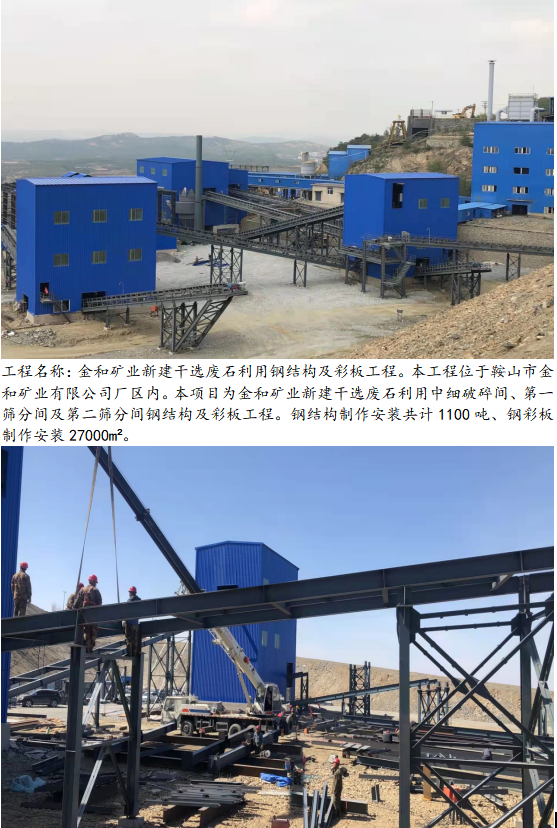 企業(yè)簡介:鞍山建安實業(yè)建設(shè)有限公司轉(zhuǎn)制前名為鞍鋼房產(chǎn)實業(yè)建筑工程公司,始于1998年,座落于鞍山市鐵東區(qū)十二道街。于2020年改制,劃入鞍山冶金工業(yè)集團有限公司區(qū)域公司管理,現(xiàn)為鞍山建安建設(shè)工程有限公司子公司。公司具備房屋建筑施工總承包貳級、鋼結(jié)構(gòu)工程、建筑機電安裝專業(yè)承包貳級、裝修裝飾、防水防腐保溫專業(yè)承包貳級,施工勞務(wù)不分等級資質(zhì)。先后承接了鞍鋼及省內(nèi)房屋建筑、裝修裝飾、鋼結(jié)構(gòu)、機電設(shè)備安裝工程。勞務(wù)分包主要承接鞍鋼工程發(fā)展技術(shù)有限公司范圍內(nèi)施工勞務(wù)。