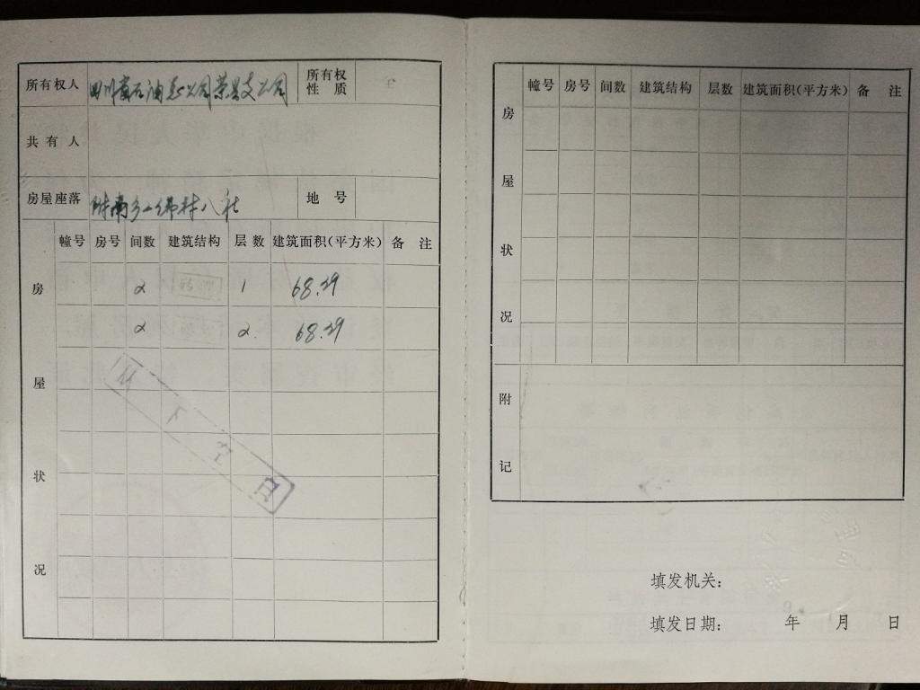 房產(chǎn)證編號為“榮權(quán)(全)字第0007526號”、“榮權(quán)(全)字第0007527號”、“榮權(quán)(全)字第0007528號”、“榮權(quán)(全)字第0007541號”,證載權(quán)利人為“四川省石油總公司榮縣支公司”,建筑面積分別為351.64㎡、72.8㎡、215.9㎡、136.78㎡,磚混結(jié)構(gòu),原房產(chǎn)用途為“辦公樓”,現(xiàn)以上房產(chǎn)均已拆除,產(chǎn)權(quán)證未注銷,目前地面房產(chǎn)均為原承租戶修建,未辦理產(chǎn)權(quán)證。