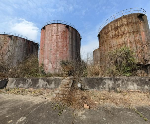 資產(chǎn)狀況:該油庫(kù)于蘭成渝管線開通后關(guān)閉閑置,油庫(kù)現(xiàn)有棧橋旁圍墻倒塌,使用隔板圍擋;有立式油罐4個(gè),房屋建筑5處(有裂縫,已停止使用),另搭建板房一間。