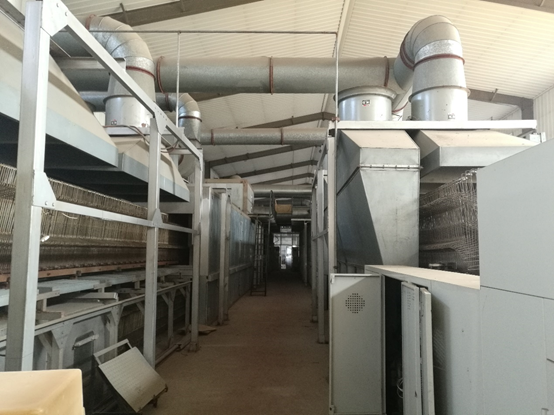 廠房外墻面下部刷涂料,上部為彩鋼,入口門為推拉門,塑鋼窗廠房內(nèi)水泥地面,彩鋼墻面及頂棚,鋼柱,鋼架支撐;設(shè)有衛(wèi)生間,地磚地面,瓷磚墻面,PVC板頂棚:局部自制2層,鋼架支撐,鋼板樓面,鋁合金隔斷,用作更衣室,由鐵樓梯與1層相連。