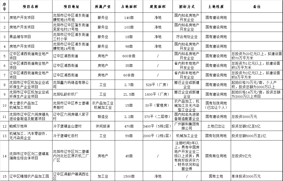 沈陽(yáng)市遼中區(qū)國(guó)有建設(shè)用地招商項(xiàng)目