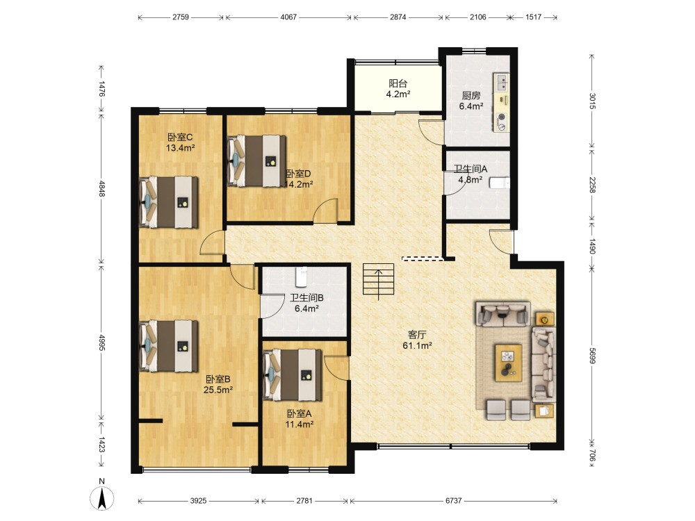 此房屋位于第4層,建筑面積185.78㎡,不把山,南北朝向,室內(nèi)錯(cuò)層結(jié)構(gòu),四室兩廳一廚兩衛(wèi)(半躍),南北通透,標(biāo)準(zhǔn)戶型,雙南臥室,雙北臥室,室內(nèi)老式裝修,樓前為七層住宅建筑,全天采光。