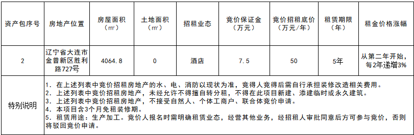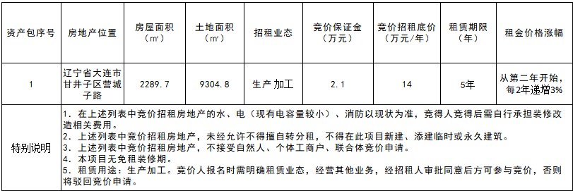 融通地產(遼寧)有限責任公司采用線上公開競價方式組織實施大連市2個資產包房地產租賃,歡迎符合資格條件的競租人前來競租。