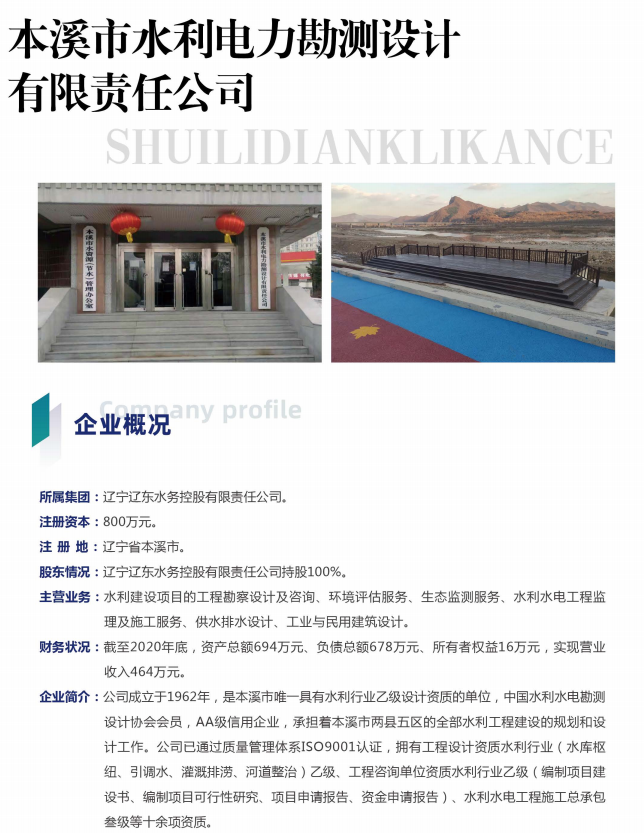 本溪市水利電力勘測設(shè)計有限責(zé)任公司