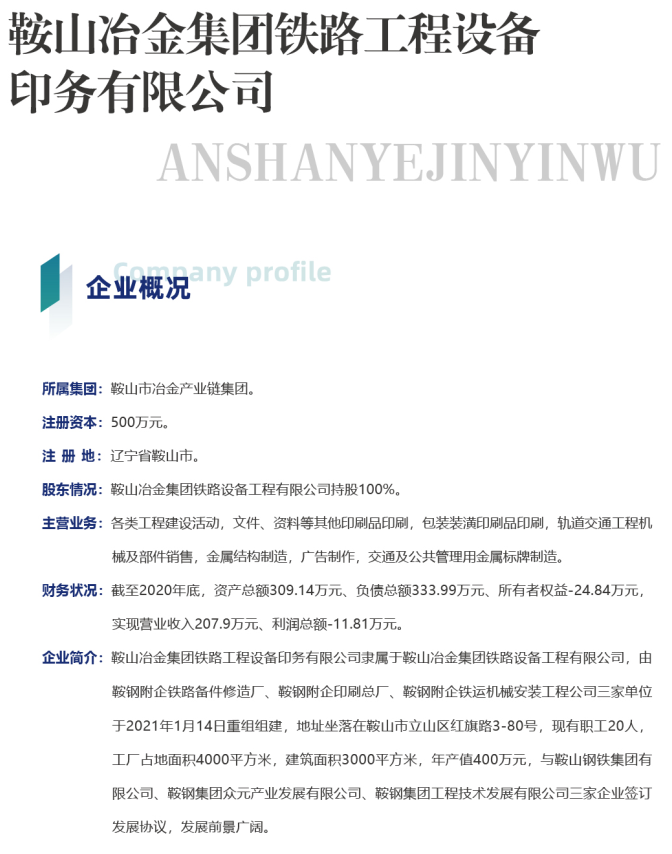 15 鞍山冶金集團(tuán)鐵路工程設(shè)備印務(wù)有限公司