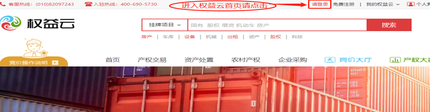 1.電腦登錄權益云網(wǎng)站:www.unibid.cn