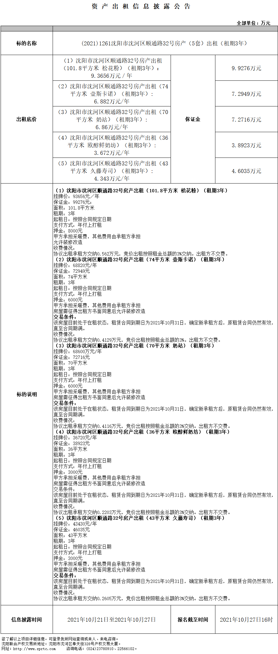 沈陽市沈河區(qū)順通路32號房產出租(36平方米 歐醇鮮奶坊 租期3年)