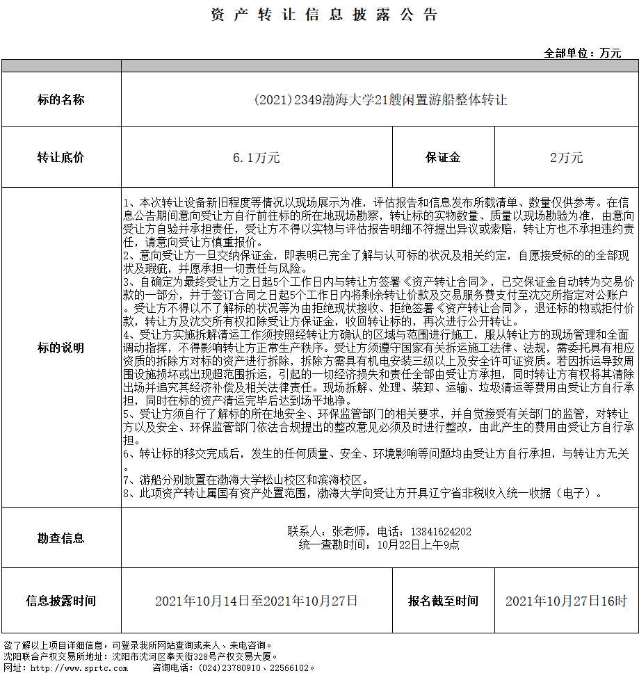 渤海大學(xué)21艘閑置游船整體轉(zhuǎn)讓