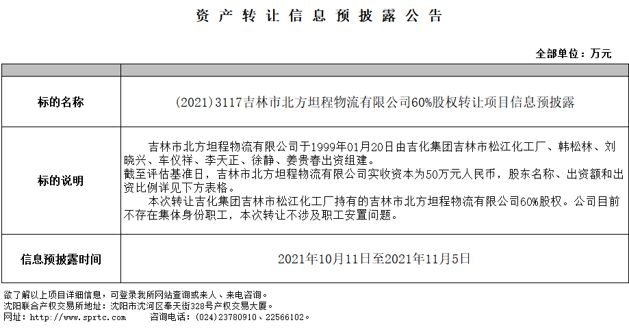 吉林市北方坦程物流有限公司60%股權(quán)轉(zhuǎn)讓