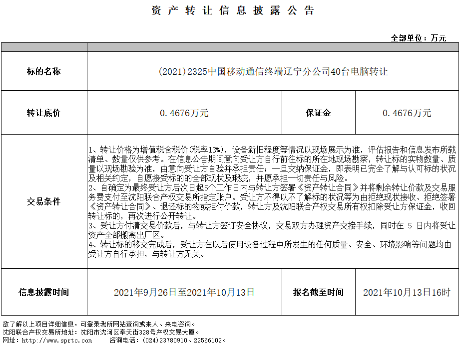 中國(guó)移動(dòng)通信終端遼寧分公司40臺(tái)電腦轉(zhuǎn)讓