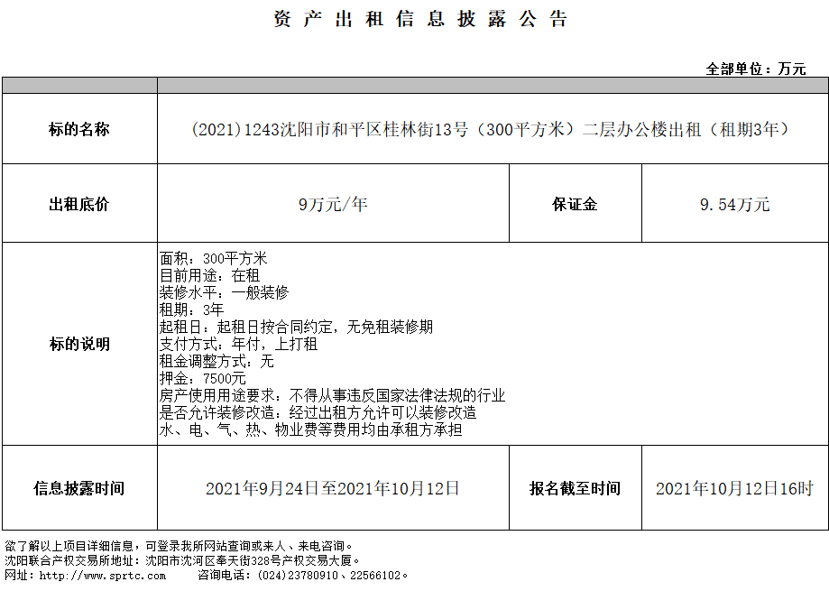 沈陽市和平區(qū)桂林街13號(300平方米)二層辦公樓出租(租期3年)