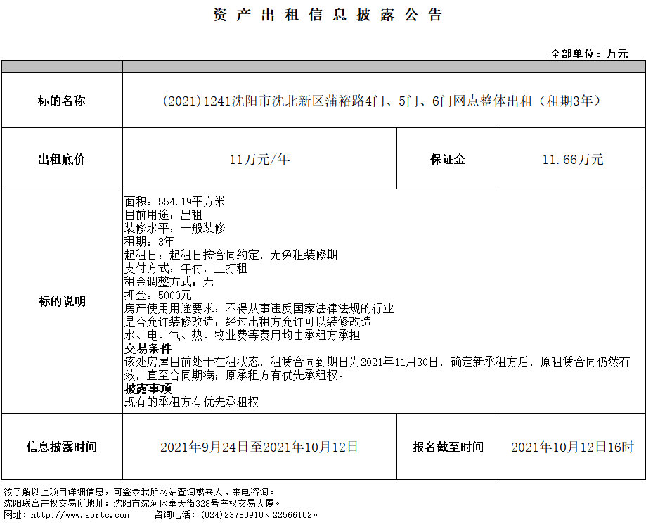 沈陽市沈北新區(qū)蒲裕路4門、5門、6門網點整體出租(租期3年)