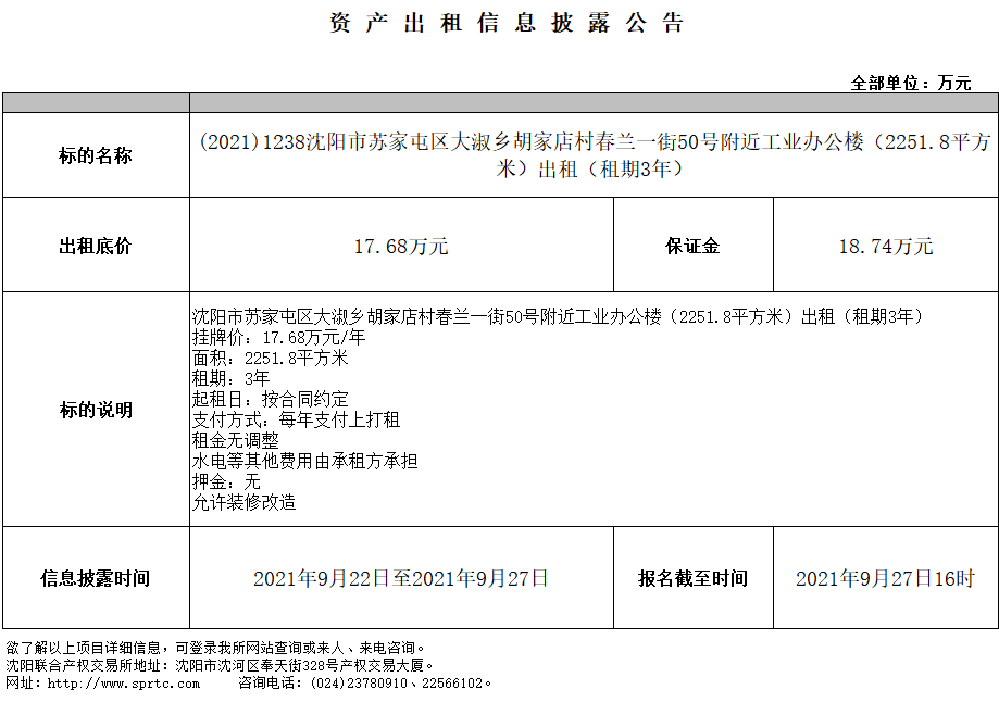 沈陽市蘇家屯區(qū)大淑鄉(xiāng)胡家店村春蘭一街50號(hào)附近工業(yè)辦公樓(2251.8平方米)出租(租期3年)