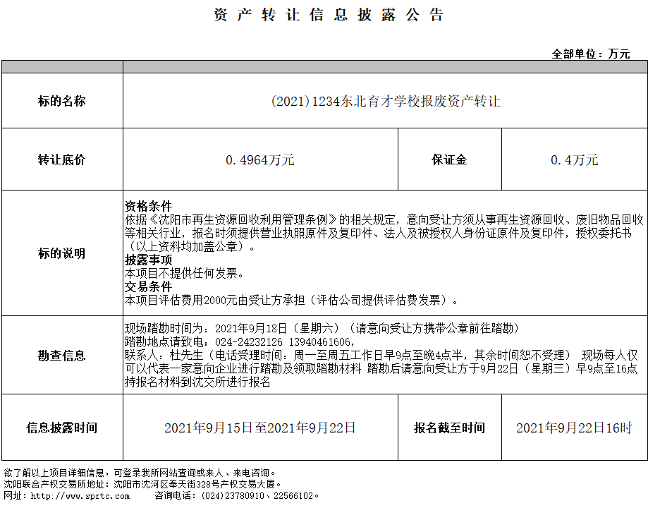 東北育才學(xué)校報廢資產(chǎn)(2)轉(zhuǎn)讓