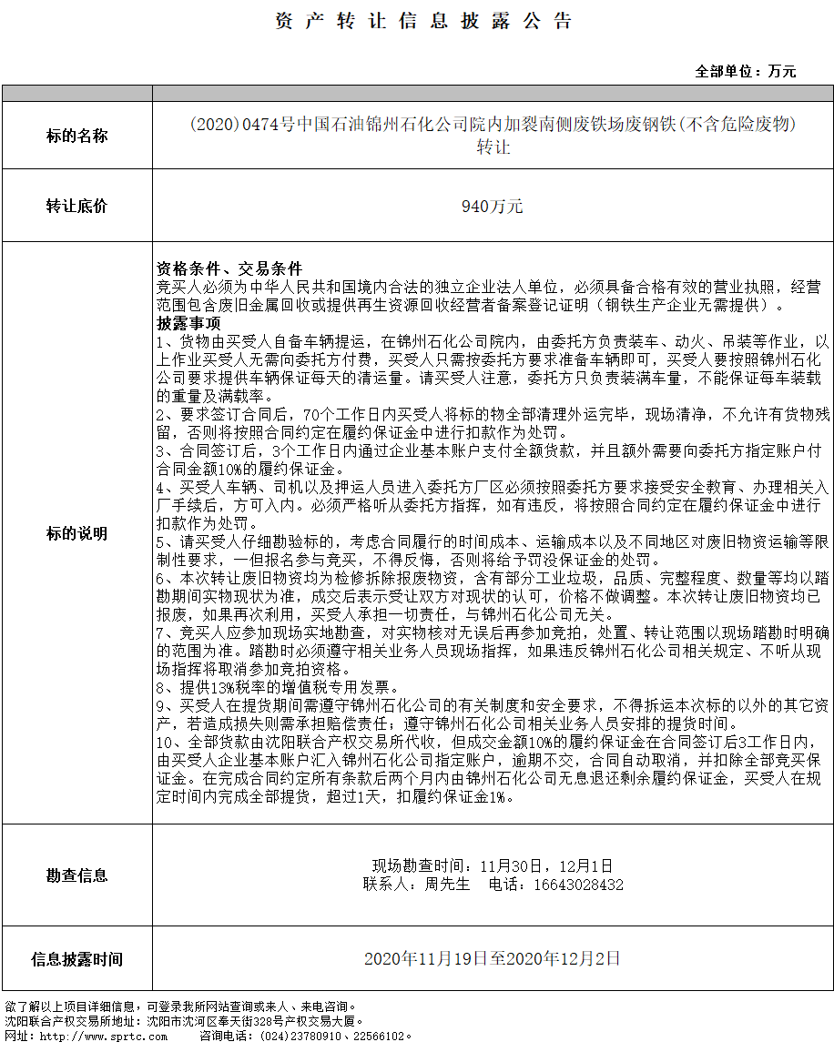 中國石油錦州石化公司院內(nèi)加裂南側(cè)廢鐵場廢鋼鐵(不含危險廢物)