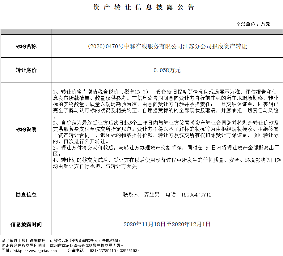 中移在線服務(wù)有限公司江蘇分公司報(bào)廢資產(chǎn)轉(zhuǎn)讓