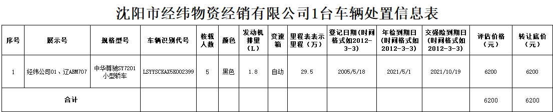 (2020)0457號(hào)沈陽(yáng)市經(jīng)緯物資經(jīng)銷(xiāo)有限公司 1臺(tái)車(chē)輛轉(zhuǎn)讓