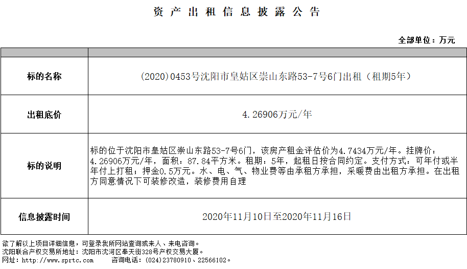 沈陽市皇姑區(qū)崇山東路53-7號6門出租(租期 5年)