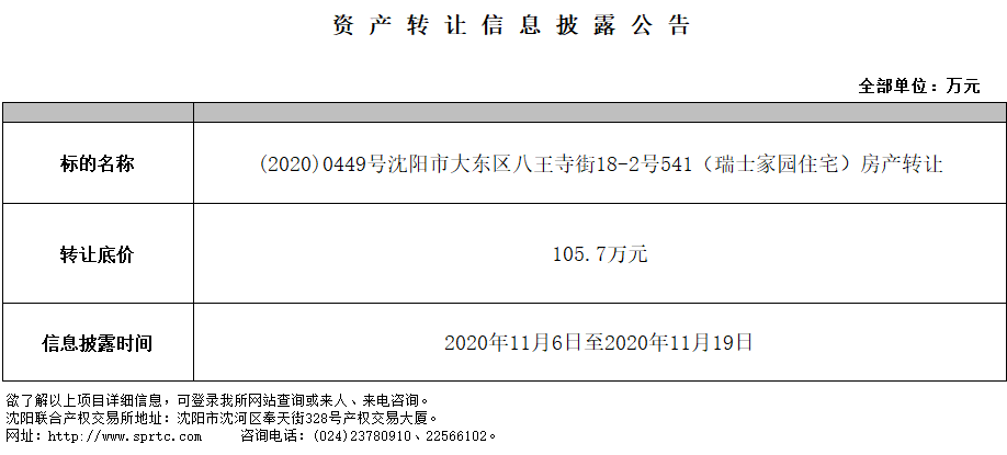 沈陽市大東區(qū)八王寺街18-2號541(瑞士家園住宅)房產(chǎn)轉(zhuǎn)讓