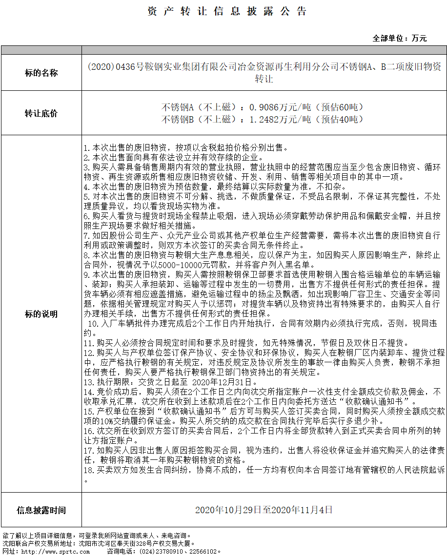 鞍鋼實業(yè)集團有限公司冶金資源再生利用分公司不銹鋼B(不上磁)