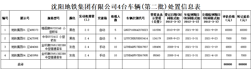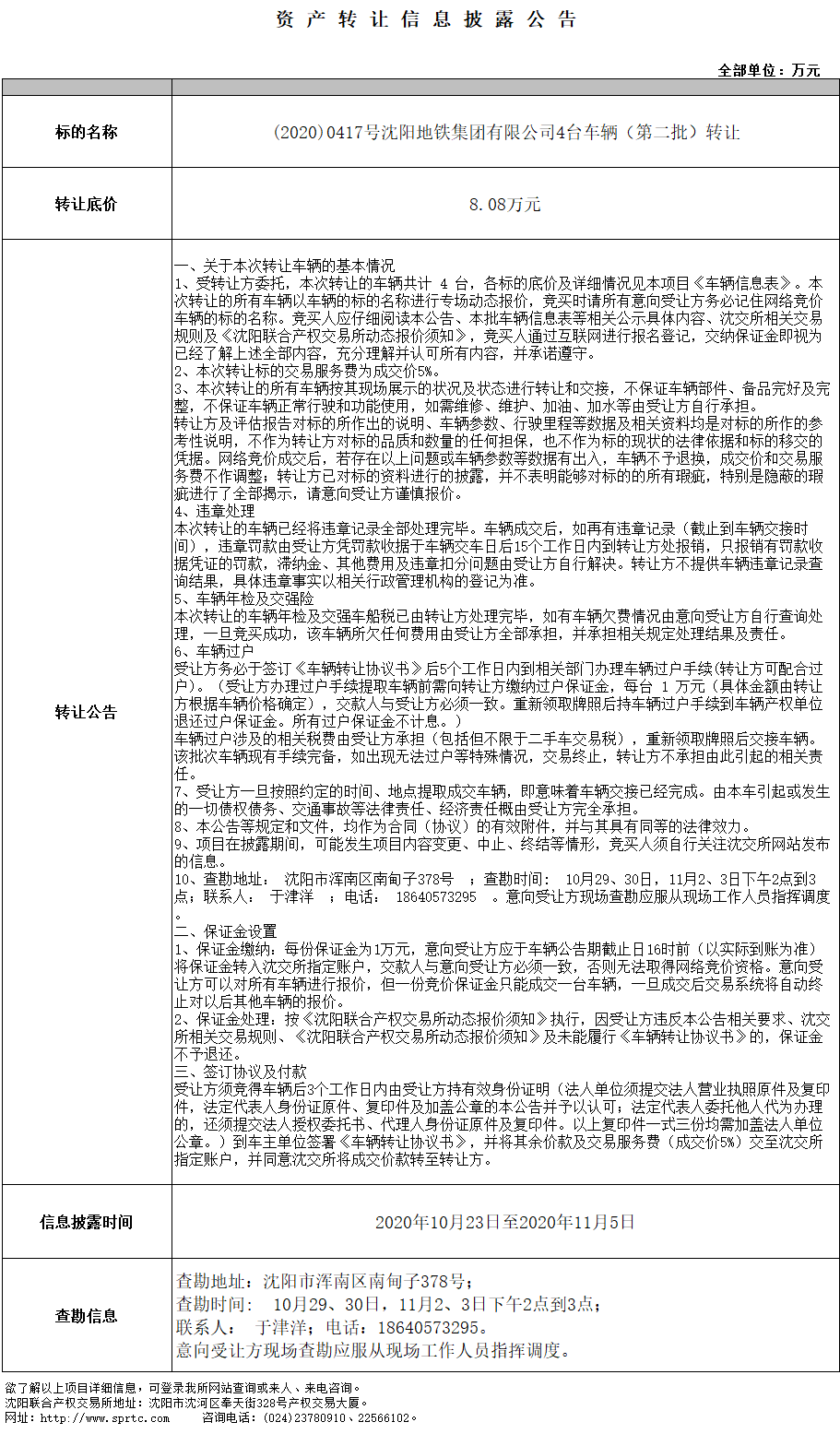 (2020)0417號(hào)沈陽地鐵集團(tuán)有限公司4臺(tái)車輛(第二批)轉(zhuǎn)讓