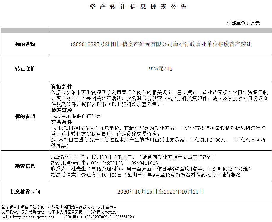 沈陽恒信資產(chǎn)處置有限公司庫存行政事業(yè)單位報(bào)廢資產(chǎn)轉(zhuǎn)讓