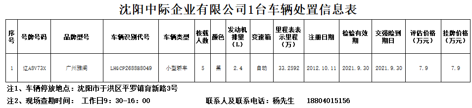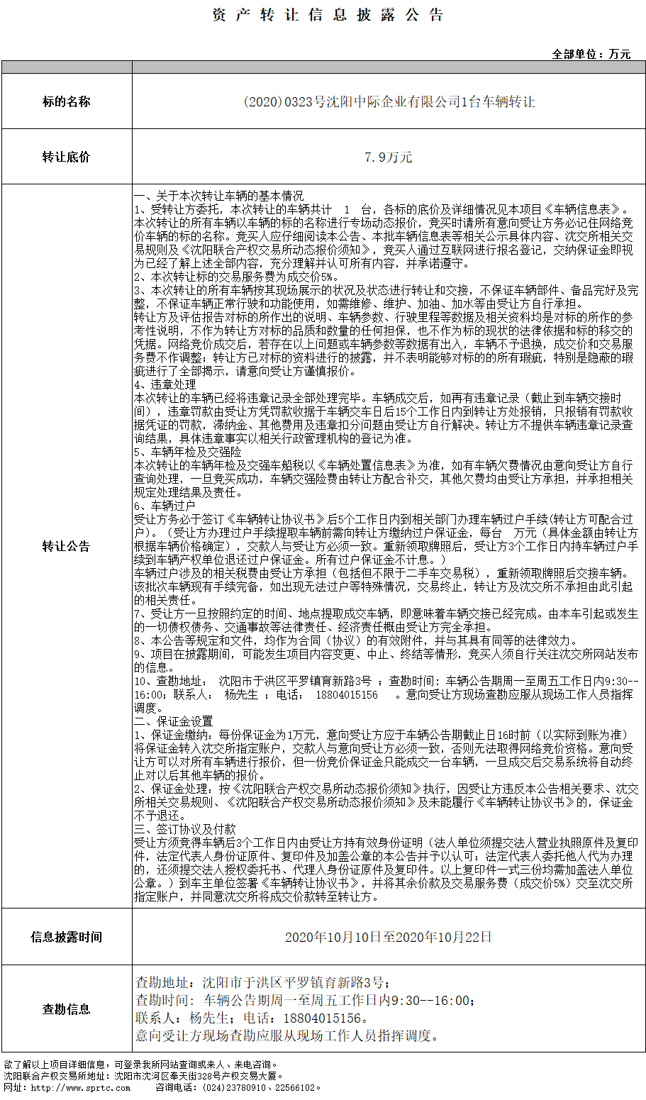 (2020)0323號沈陽中際企業(yè)有限公司1臺車輛轉(zhuǎn)讓